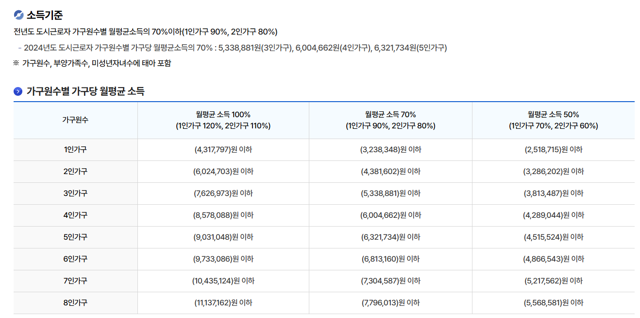 소득과 자산 기준도 중요한 자격 요건입니다. 소득 기준은 가구원 수별 도시근로자 가구당 월평균 소득의 일정 비율 이하(대부분 70% 이하)여야 합니다. 2024년 기준, 3인 가구의 경우 월평균 소득이 약 480만원 이하(기준 변동 가능)여야 자격이 주어집니다. 소득 산정은 근로소득, 사업소득, 재산소득, 기타소득 등을 모두 합산하여 계산합니다.