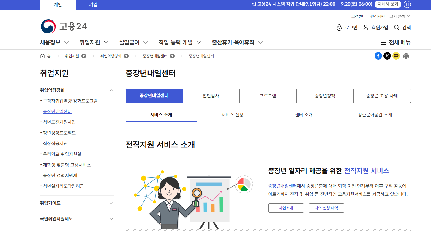 고용노동부 홈페이지나 워크넷을 통해 가까운 중장년내일센터 위치를 확인합니다.